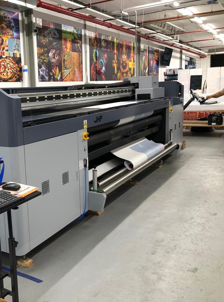The JHF Mars 8r 5M wide super grand format roll-to-roll UV LED digital inkjet signage photographic printer consistently provides professional-quality wallpapers, fabrics, uncoated papers and traditional signage at remarkable speeds.